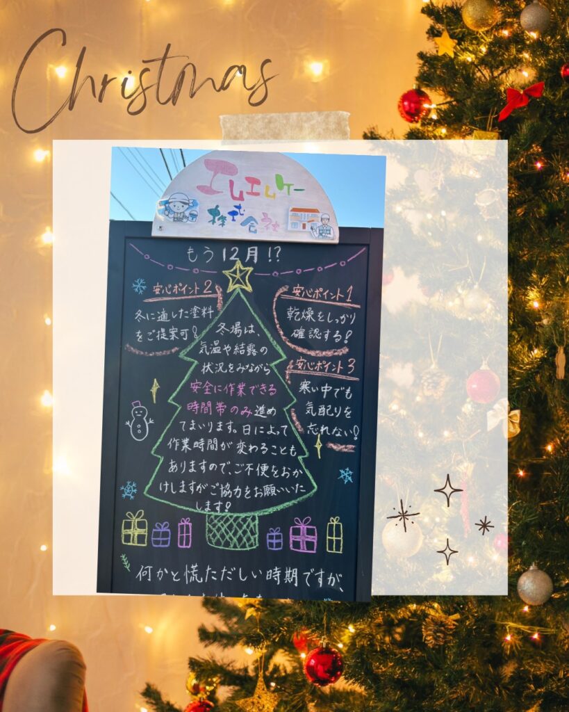早いもので、もう12月ですね🎄 冬場でも、外壁塗装は問題なく施工できます。 でも塗装業者の施工管理、技術力が重要・大事になってきます❣ 朝の冷え込みや結露など、なかなか思うように進まない時期
